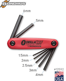 1.ประแจหกเหลี่ยม ไว้ใช้ขันน๊อตหกเหลี่ยม จะเป็นแบบพับเก็บได้ หรือ แบบตัวแอล ก็ดี ถ้าให้ดีก็มีแบบด้ามตัวทีเตรียมไว้เลย